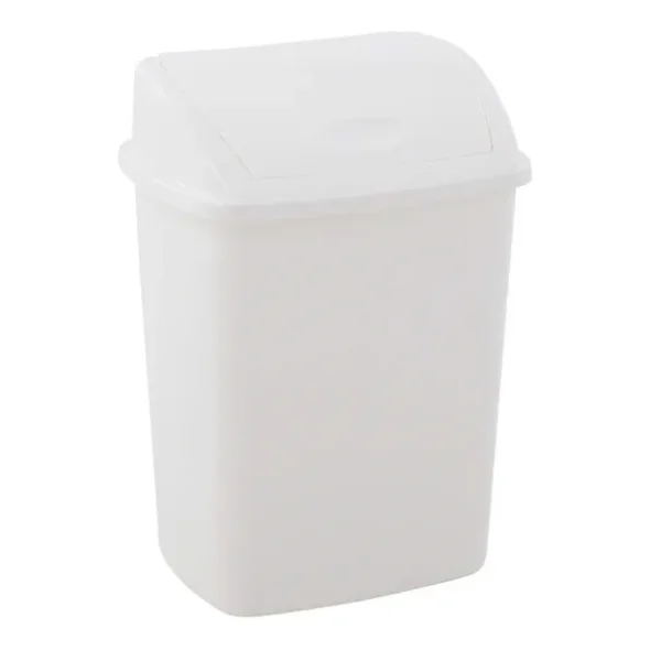Produktbeskrivning:Sopkorg i plast med svänglock, som kan användas antingen stående på golvet eller väggmonteras med beslag som köps separat. Enkel lösning.