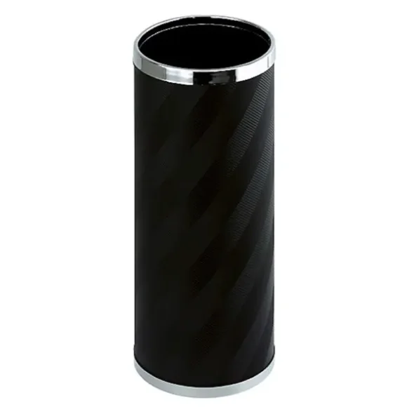 Paraplyhållare, svart, med kanter i rostfritt stål, innerhink i plast