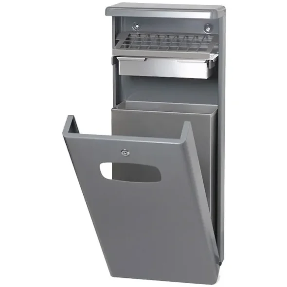 Produktbeskrivning:Rymlig sopkorg med askkopp för väggmontering.
