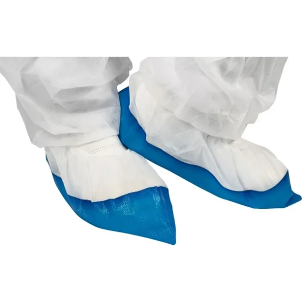 Skyddsskor, XL, 40x16,5cm, 60 mikron, vit, PE/PP, halkfri, med blå undersida, engångs 400st/förp