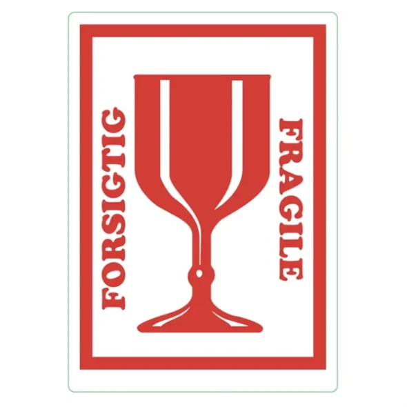 Etiketter självhäftande 150x210mm röd Försiktig/glas 250st/rulle