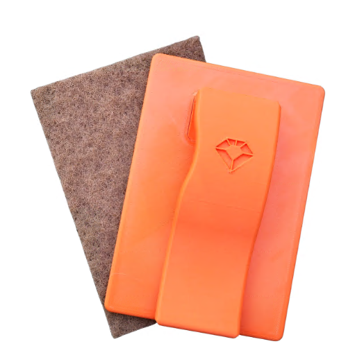 Våra valnötspads sitter säkert, så du kan skrubba kontrollerat och precist utan att den glider. De är gjorda av krossade valnötsskal, vilket ger en hård men säker yta för känsliga rutor och ramar.