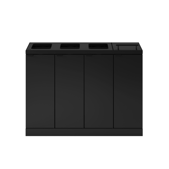 Flexibelt avfallssystem från Bica säkerställer enkel och användarvänlig avfallssortering på arbetsplatsen. Avfallssystemet är designat med 4 fraktioner med respektive 3 öppna inkast och 1 med lyftlock. Lyftlocket har gasdämpare för ljudlös stängning. Syftet med locket är att minimera luktproblem och förhindra bananflugor vid sortering av matavfall. En riktigt smart lösning om påsen inte töms så ofta.