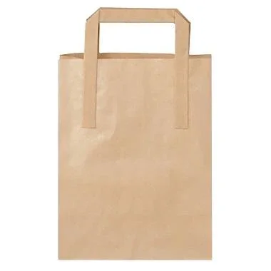 Bärkasse i brunt papper med handtag. Påsen mäter L 180 x B80 x H220 mm. Volymen är 4,9 liter.