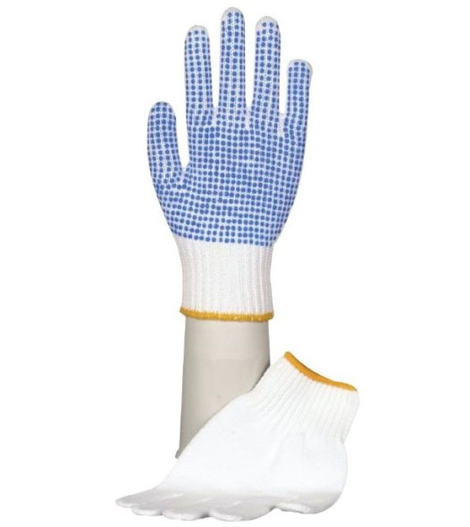 Handskar stickade vita med dubbar, Str. M, 12 par