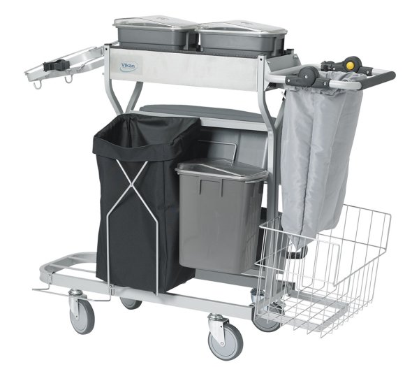 Compact Plus 40 trots en bredd på endast 48 cm behåller den fortfarande en kapacitet på 600 m2, eftersom det finns plats för över 20 preparerade moppar samt stora mängder pappersvaror och tvål. Med extra utrustning kan mängden moppar och trasor fördubblas, innehåller också en dubbel soppåse.