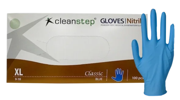 Blå nitril engångshandskar av hög kvalitet från Cleanstepnordic. Kan användas för en mängd olika uppgifter, såsom rengöring, vård, hantering av livsmedel, medicinhantering och mycket mer.