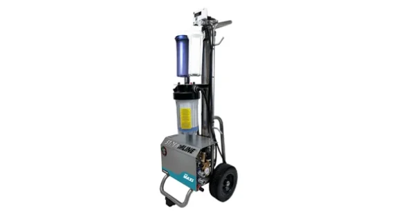 Systemet har en kompakt och robust ram i rostfritt stål, vilket gör det hållbart och pålitligt. Systemet har också full RODI-filtrering (förfiltrering, omvänd osmos och dejoniseringsfilter), vilket tar bort upp till 98% av upplösta föroreningar från vattnet. Detta säkerställer att vattnet som produceras av systemet är rent och fritt från föroreningar, vilket gör det idealiskt för användning i rengöringsapplikationer.