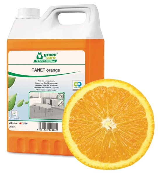 TANET orange är ett underhållsrengöringsmedel för golv och andra ytor med utmärkta miljöegenskaper och en behaglig apelsindoft. Med respekt för den biologiska cykeln tar det hänsyn till hälsan och användarens säkerhet.