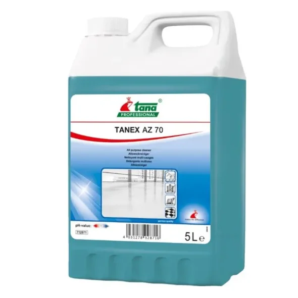 • TANEX AZ 70 är användarvänlig och lämnar en känsla av friskhet efter applicering. Användningsområde: Alla rymliga lokaler där hygien och renlighet är av avgörande betydelse. Perfekt lämpad för dörrar, glas och plastytor, keramiska plattor, lackerade trä- och metallmöbler, etc.