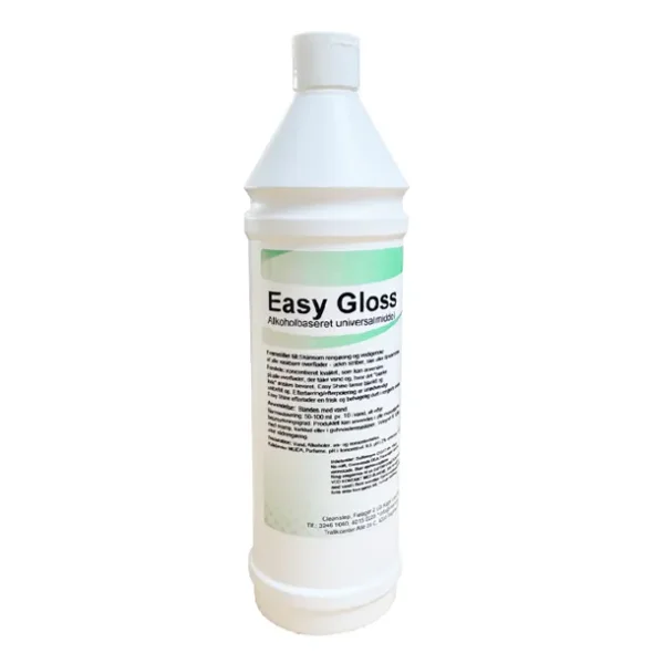 Easy Gloss är ett alkoholbaserat universalmedel i koncentrerad kvalitet, utvecklat för skonsam och effektiv daglig rengöring av alla ytor som tål vatten. Medlet tar enkelt bort fett, smuts och dagliga beläggningar utan att lämna ränder, slöjor eller tvållämningar, och den alkoholbaserade formuleringen säkerställer att ytorna torkar snabbt och blankt helt utan behov av efterpolering.