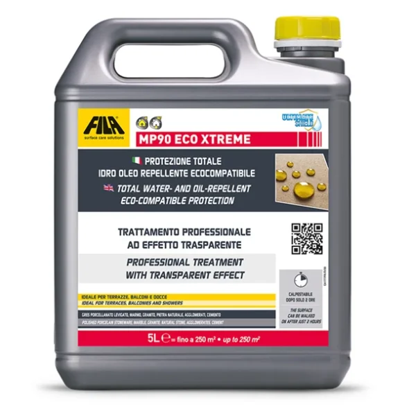 MP90 Eco Xtreme är det miljövänliga och bästa fläckskyddsmedlet för terrakotta – golvtegel, porslinsplattor, natursten, marmor och granit med blank finish eller patinerad, borstad eller matt yta. Minskar materialets absorption utan att ändra utseendet.