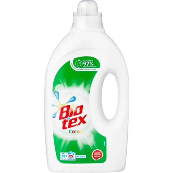 Produktbeskrivning:Bio-tex Color flytande maskintvätt är särskilt lämplig för färgade kläder och tvätt vid låga temperaturer och i tvättmaskiner där pulverprodukter kan vara svåra att lösa upp. Innehåller biologiska enzymer, men inte optiskt vitmedel och blekmedel.