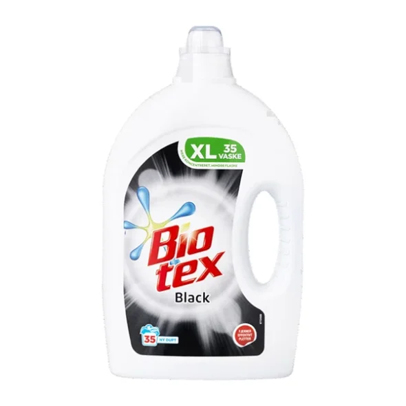 Bio-tex Black innehåller varken blekmedel eller optiskt vitmedel, utan istället färgbevarande ingredienser och ett enzym som motverkar den gråaktiga ludd som ofta ses på mörka kläder efter ett par tvättar.