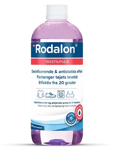Rodalon Textilvård är ett skonsamt tvättmedel för textilier, som kan användas i sköljmedelsfacket, förtvätt eller som ersättning för vanligt tvättmedel. Om kläderna inte har fläckar kan man helt undvika tvättmedel och bara använda Rodalon Textilvård. Det kan användas på alla tvättbara textilier och har en desinficerande och antistatisk effekt redan vid 20 grader.