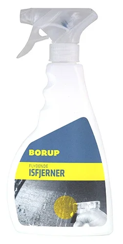 Borup Isborttagare används för snabb och enkel upptining av isbeläggningarpå bilrutor och förhindrar samtidigt ny isbildning.