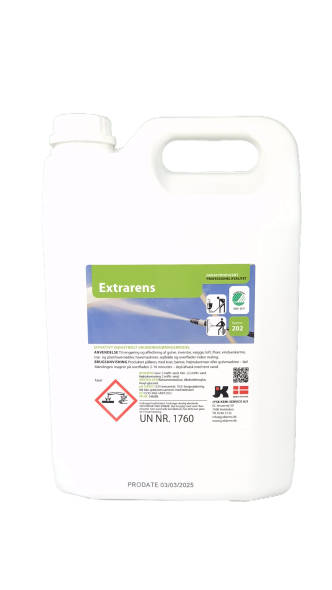 EXTRARENS är ett effektivt industriellt rengörings- och avfettningsmedel för rengöring av alla tvättbara ytor från olja, fett, smuts, sot, tobaks tjära m.m. inom industri, sjöfart, jordbruk samt i livsmedelsindustrin. Dessutom lämplig som grundrengöringsmedel för golv, inredning, väggar, tak, kakel, fönsterkarmar av plast, aluminium och trä.Ladda ner säkerhetsdatablad