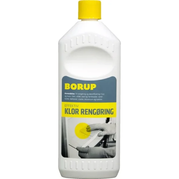 OBS: Borup Klor Rengöring får inte användas tillsammans med WC-rengöringsmedel! Borup Klor Rengöring får inte heller användas på läder, silver och aluminium.