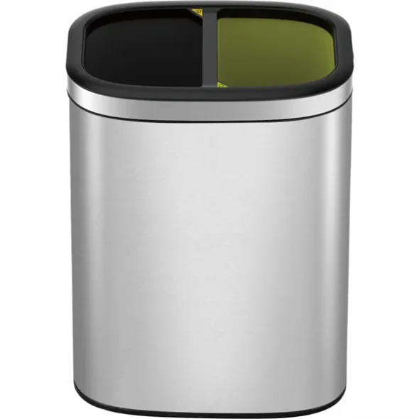Papperskorg, EKO OLI-Cube, stål matt, plast/rostfritt stål, 2-fack, 2x10 l, innerhink i plast, säckhållare, fingeravtrycksfri