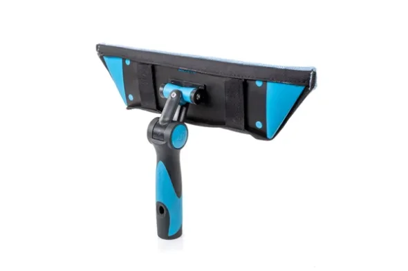 Gekko-systemet för fönsterputsning och rengöring är nu i lager. Den trapezformade hållaren kan användas handhållen eller monteras på alla Moermans teleskopskaft. Lättviktshållaren kan roteras 360 grader och justeras i vinklar från 0 till 60 grader. Med en insexnyckel justeras den enkelt till den friktion eller vinkel man önskar