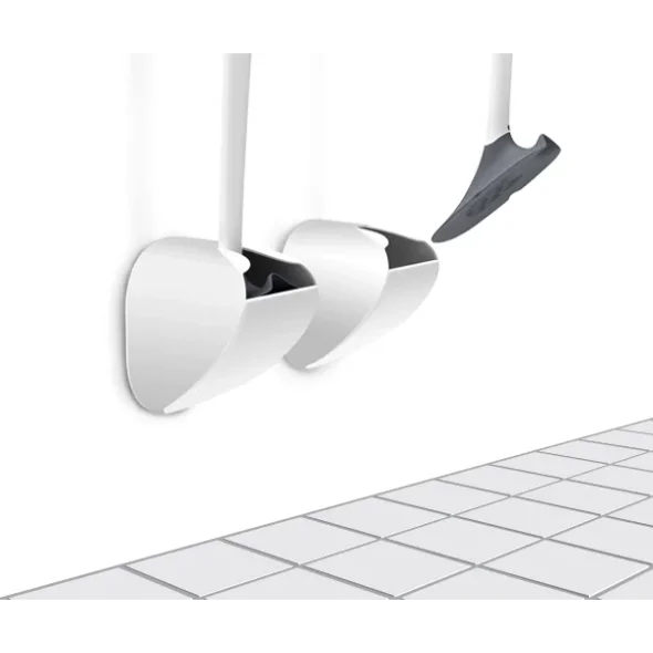 Det flexibla huvudet anpassar sig efter toalettens form och når även under kanten för grundlig rengöring. Toalettborsten är droppfri, vilket förhindrar bakteriefyllt vatten från att nå golvet eller samlas i hållaren. Handtaget är extra långt för bättre räckvidd och komfort vid rengöring.