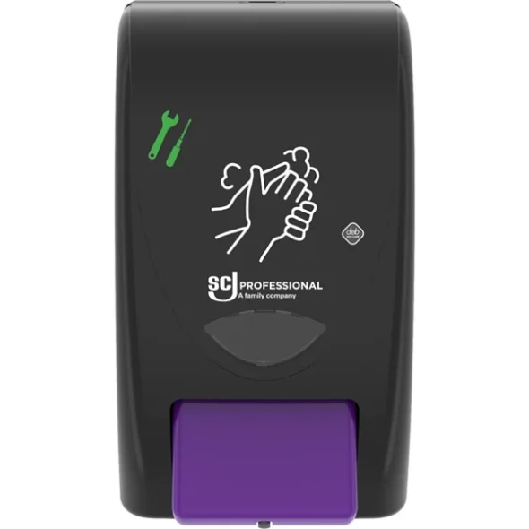 Användningsområde:Manuell patrondispenser för 2 liter. Färgen är lila för handrengöring, med illustration för handtvätt/handrengöring. Dispensern är skyddad med BioCote, som är ett antimikrobiellt ämne som hämmar tillväxten av bakterier och mögel. BioCote slits inte ut och fungerar därför under hela dispenserns livslängd. Det är livstidsgaranti på dispensern vid normal användning.