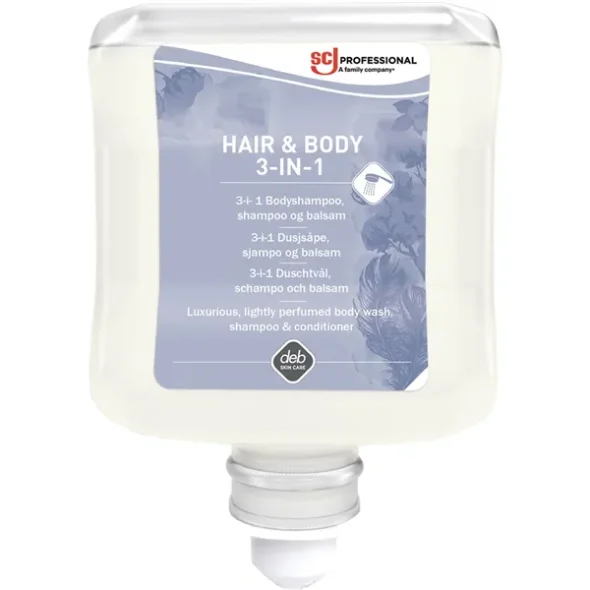Hår- och kroppsschampo, SCJ Professional, 1000 ml, 3in1 hair & body, utan färg, med parfym
