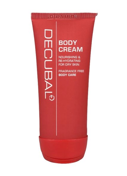 Produktbeskrivning:Decubal Body Cream är en vårdande och fuktgivande kräm som innehåller lanolin och vaseline, vilka aktivt förhindrar fuktförlust från huden, samt naturlig olja och E-vitamin som vårdar den. Krämen verkar återuppbyggande på hudens barriärer och absorberas snabbt utan att kladda. Krämen kan användas för torr hud, samt för barn med tendens till frostkinder eller utslag runt munnen.