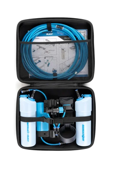 Spray-Ray är ett banbrytande spraysystem som enkelt fästs på ditt Excelerator 2.0-handtag eller Gekko pad-hållare. Designad med din bekvämlighet i åtanke, ansluts den enkelt till en manuell pump, som monteras på din förlängningsstång. Och vet du vad? Du kan bära sprayflaskan direkt på ditt bälte, så att allt är inom räckhåll! Den levereras med generösa 30 fot högkvalitativ slang, vilket gör att du enkelt kan rengöra fönster upp till andra våningen. Spray-Ray är här för att revolutionera din rengöringsrutin. Snyggt packad i ett hårt fodral. Säg adjö till de irriterande avbrotten och hej till en sömlös, effektiv fönsterrengöringsupplevelse.