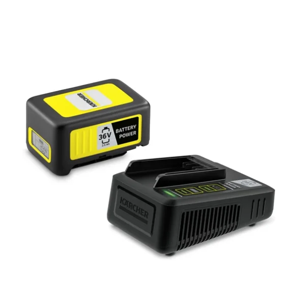 Ett startpaket för alla Kärcher 36 V batteriplattformsenheter: Kärcher Battery Power 36 V / 2,5 Ah startpaket består av ett 36 V / 2,5 Ah Kärcher Battery Power utbytbart batteri med innovativ Real Time Technology och en 36 V snabbladdare som kan ladda batteriet upp till 80 % på bara 48 minuter.