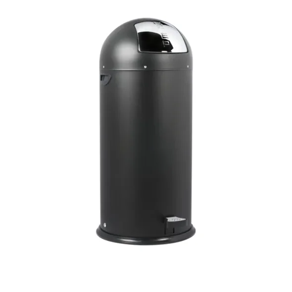 Tillverkad i pulverlackerat stål. Push-bin med pedalfunktion i metall samt plast. Invändigt finns ytterligare hink i metall, där eventuell plastpåse monteras. På sidan finns två handtag i plast. I botten är en gummikant monterad, så hinken är halkfri.
