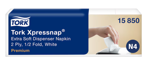 Tork Xpressnap® servettdispensrar är det perfekta valet för restauranger med självbetjäning. Systemet kommer att minska din servettförbrukning med 25 % jämfört med traditionella servettdispensrar. Tork Xpressnap® extra mjuka, vita 2-lagers dispenserservetter är lämpliga för platser som inte vill kompromissa med vare sig praktisk funktion, driftskostnader eller kvalitet.