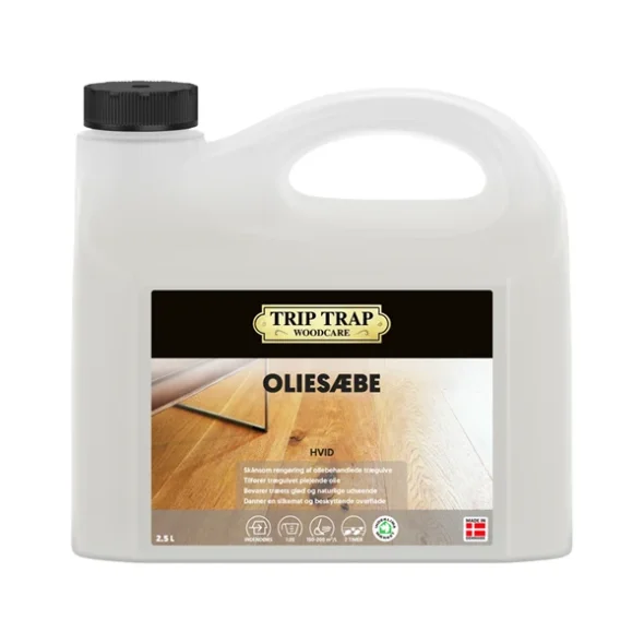 Trip Trap Oljesåpa används för rengöring, vård och underhåll av oljebehandlade trägolv. Trip Trap Oljesåpa Natur används vanligtvis för naturoljade trägolv och Vit används vanligtvis för vitoljade trägolv.