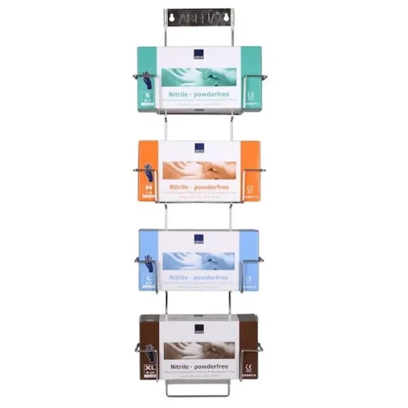 Flexibelt ställ för dispenser med justerbara armar. Passar till handsklådor, nitrilhandskar, latexhandskar, vinylhandskar, ansiktsservetter, förkläden i dispensrar mm. Praktiskt direkt att använda till t.ex. kliniker, slakterier, läkare eller sjukhus m.m.